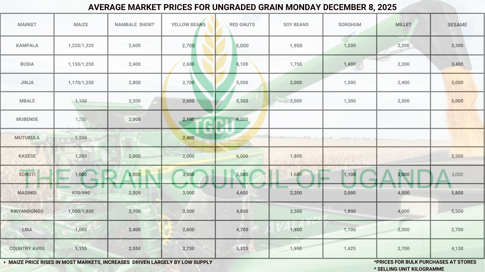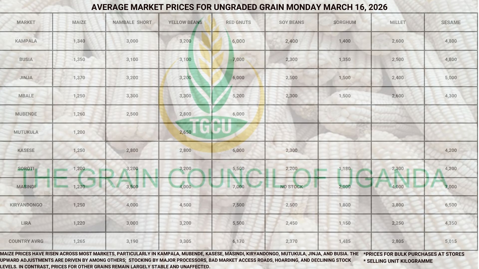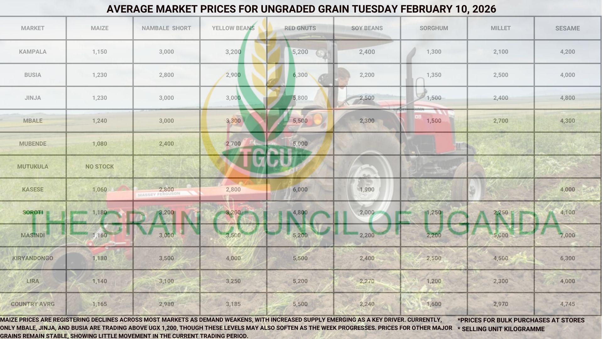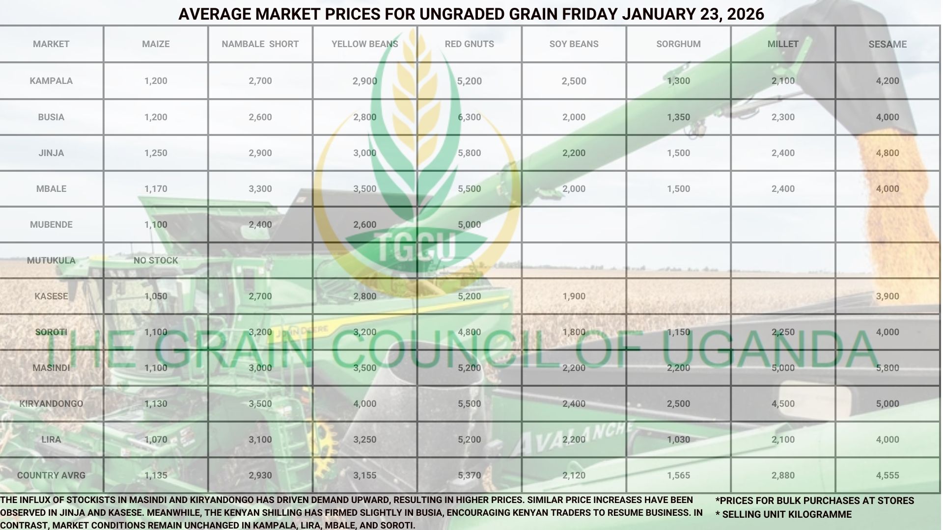 The Grain Council of Uganda (TGCU) is a non-profit, membership organization founded and registered in 2012, comprising key stakeholders along the grains value chain. TGCU plays a crucial role in strengthening the country’s grain sector, collaborating and coordinating key players to address critical challenges and improve competitiveness.