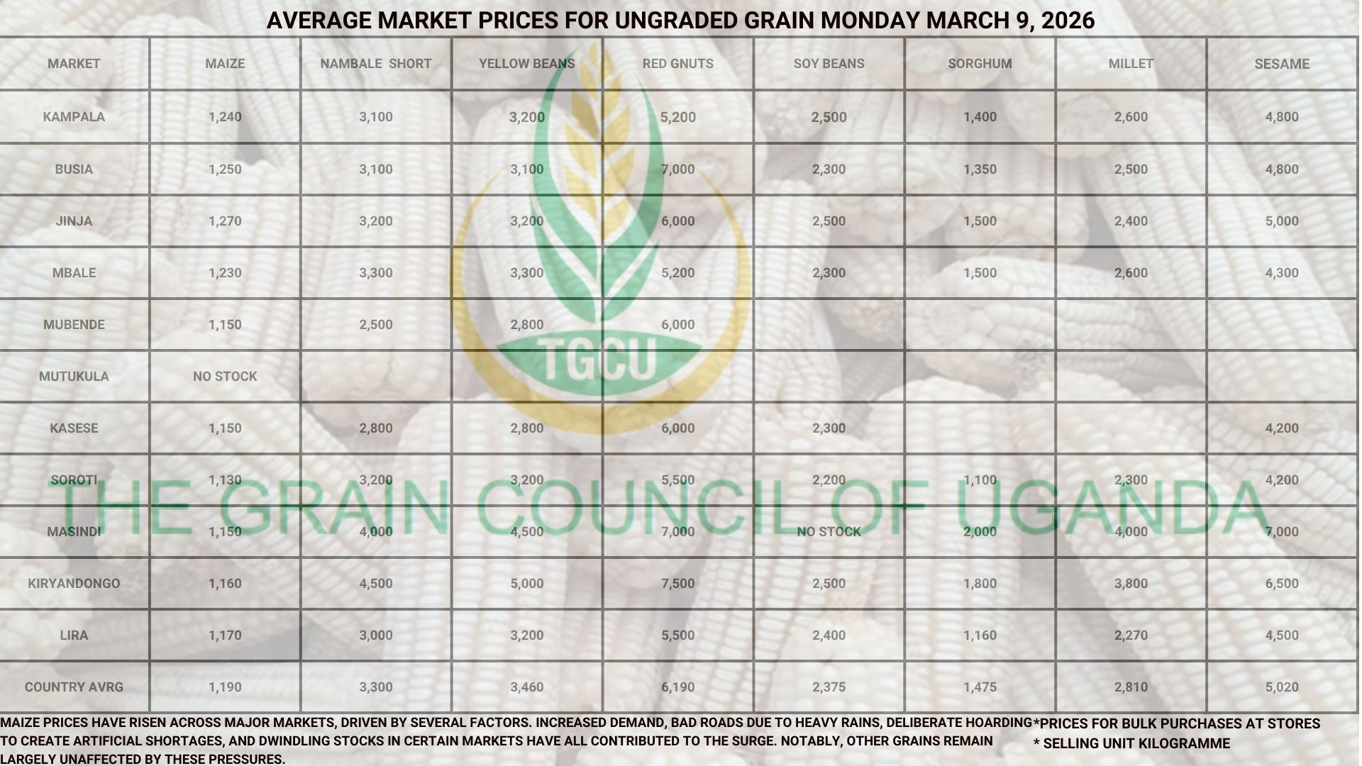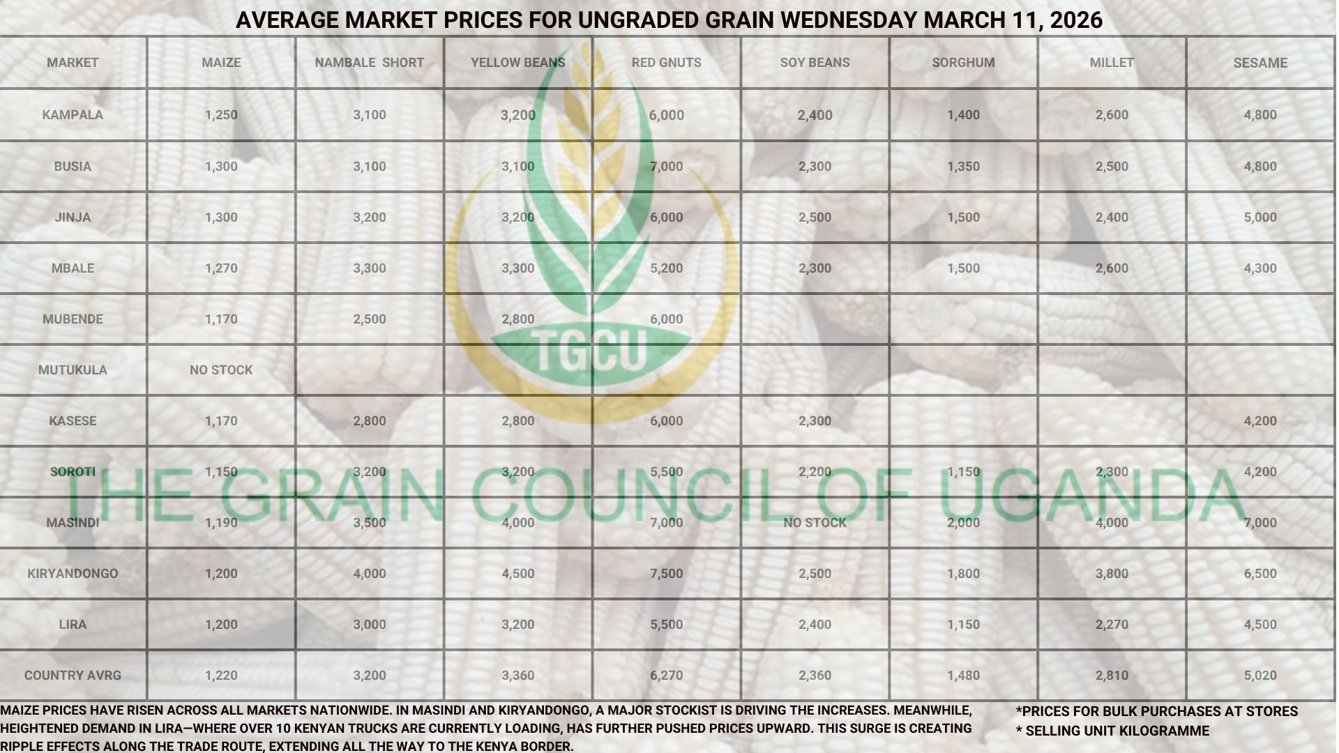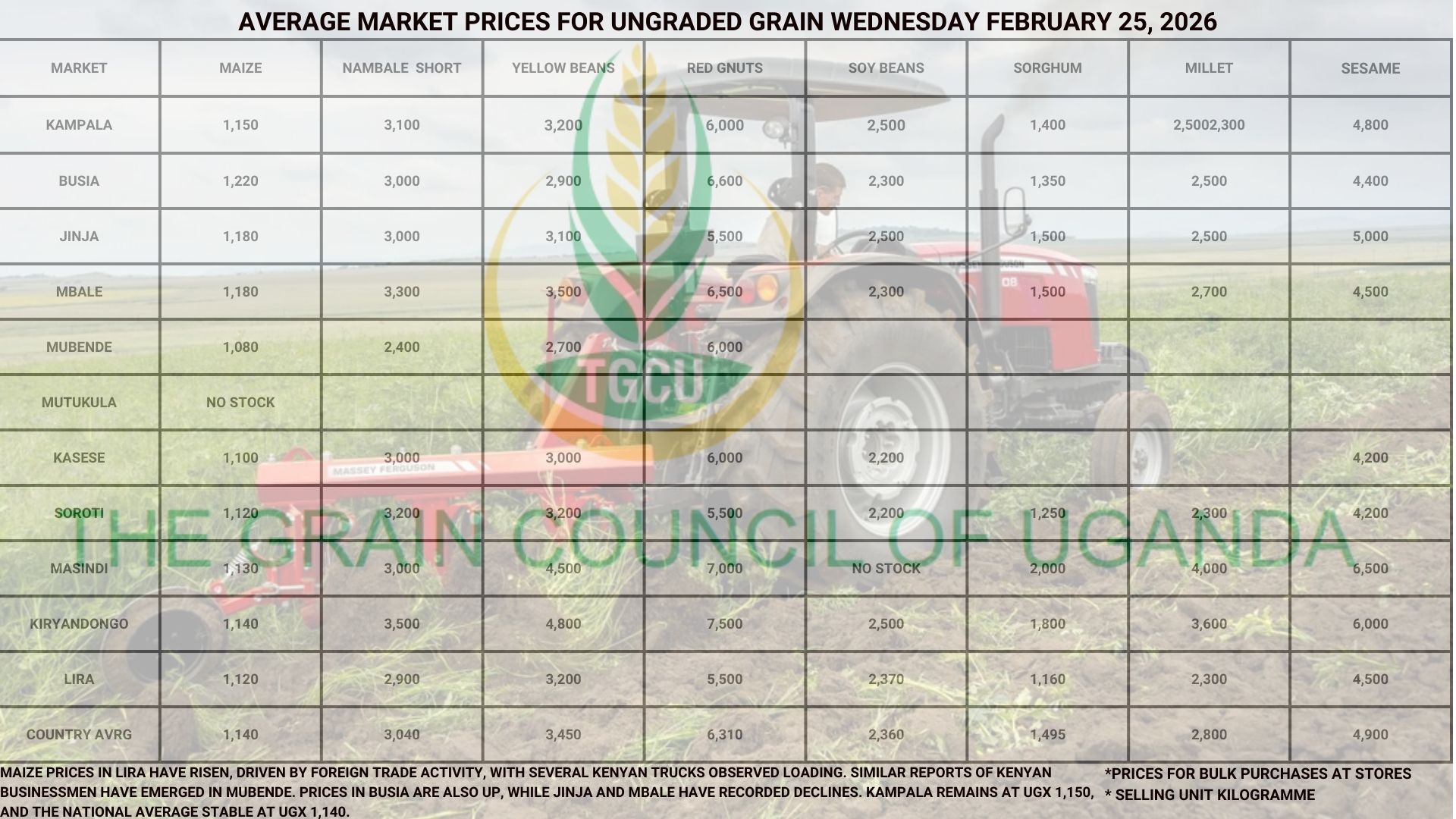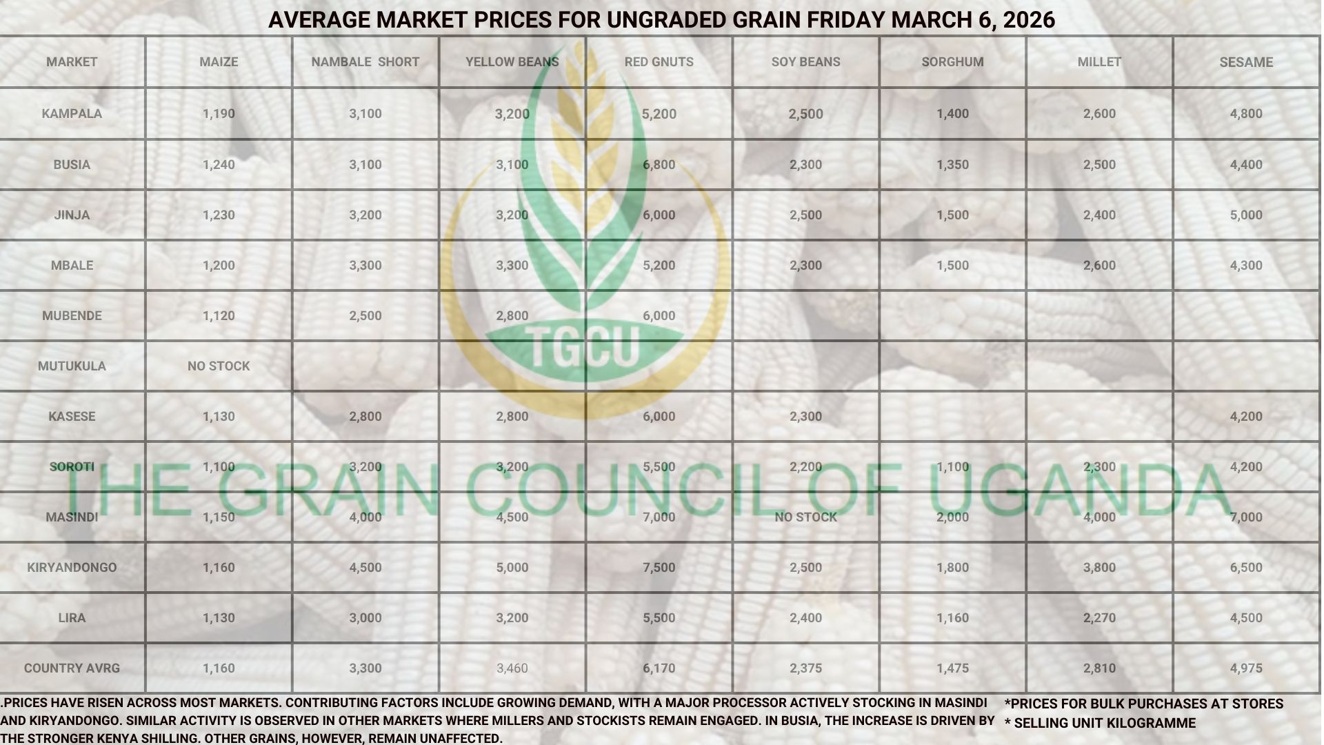 The Grain Council of Uganda (TGCU) is a non-profit, membership organization founded and registered in 2012, comprising key stakeholders along the grains value chain. TGCU plays a crucial role in strengthening the country’s grain sector, collaborating and coordinating key players to address critical challenges and improve competitiveness.