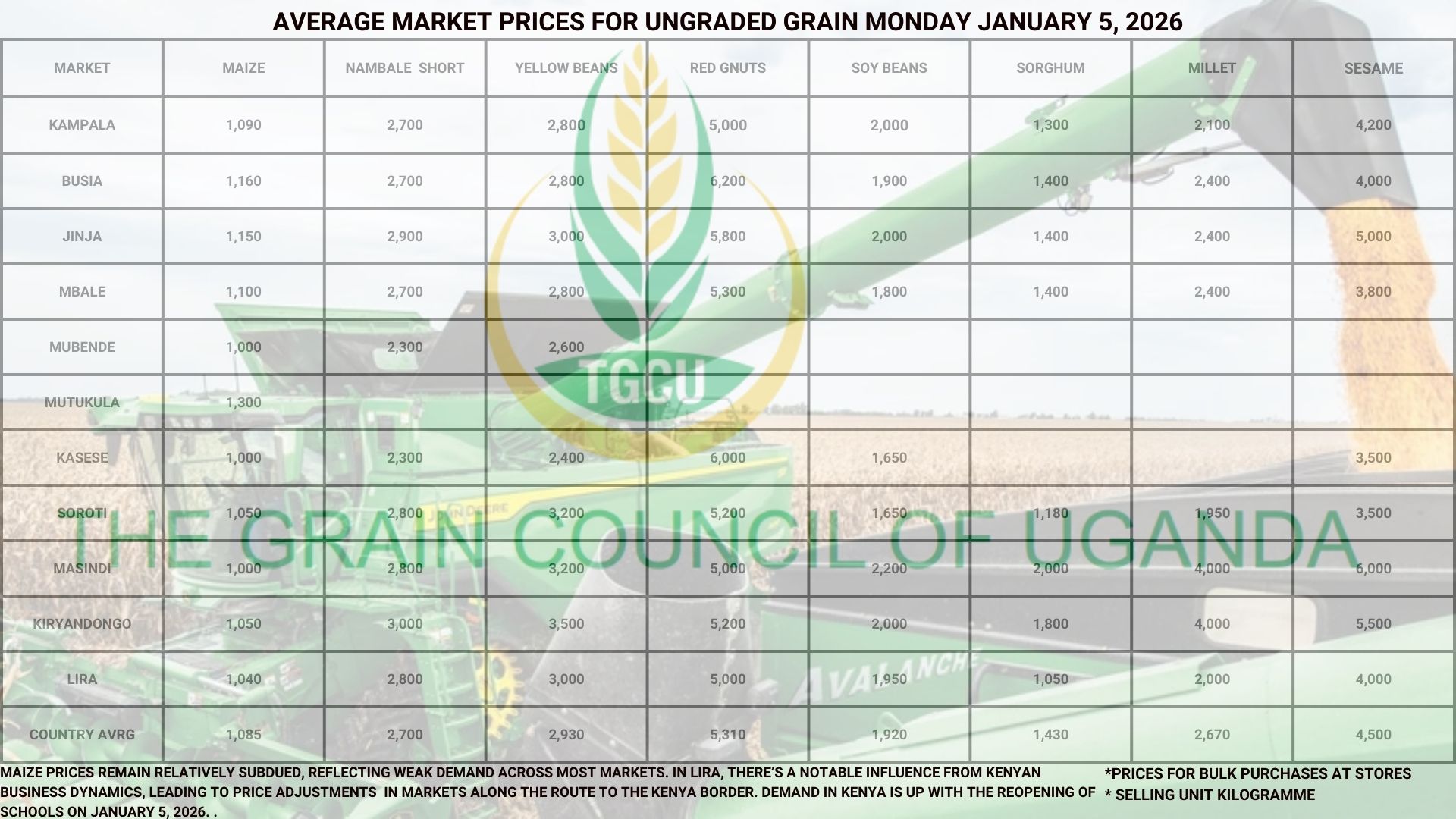 The Grain Council of Uganda (TGCU) is a non-profit, membership organization founded and registered in 2012, comprising key stakeholders along the grains value chain. TGCU plays a crucial role in strengthening the country’s grain sector, collaborating and coordinating key players to address critical challenges and improve competitiveness.
